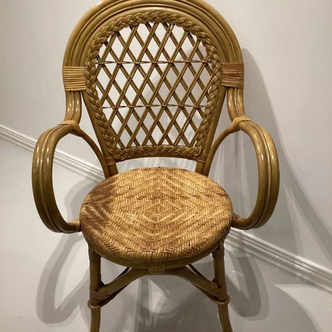 Upeat rottinkiselkänojalla varustetut vanhat tuolit myytävänä. Kunto molemmissa erittäin hyvä. Rungot tukevia. Rottingeissa hyvin pieniä vikoja. Verhoilu puhdas eikä ole hajuja. Istuinkorkeus 47 cm. Myydään parina.