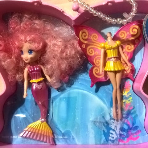 Kaksi ehjää Disney Decendants nukkea, joilla siniset hiukset ja liikkuvat nivelet. Mukana tulee kuvan asusteet. Nuket soveltuvat sekä leikkeihin että keräilyyn. Molemmat Hasbro 2014 ja ne on tuotu Usa:sta.