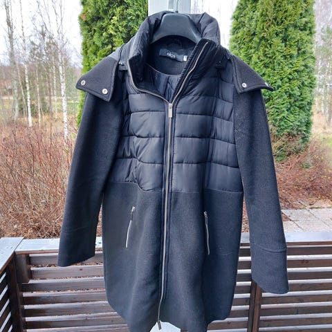 Ellokselta ostettu upea punavioletti untuvatakki koossa 38. Hihat jäiväivat yli 170cm teinille lyhyeksi. Hupun reunassa irrotettava karva.