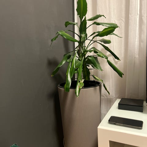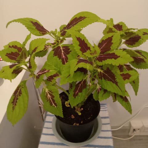 Kasvi. Juuri vaihdettu uusi multa. Tekee juuri uutta lehteä.
