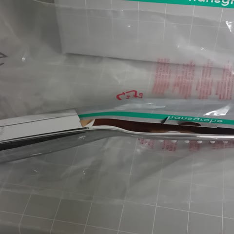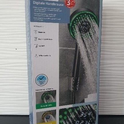 Suihkupää mittaa vedenkulutusta ja vedenlämpötilaa. Käyttämätön.