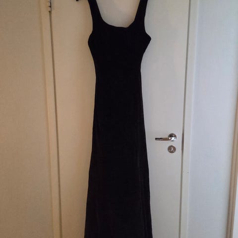 Ilta- tai juhlapuku sinisenä, koko 38. Puvussa on koristeellinen yläosa, jossa on helmiä ja koristekiviä, sekä pitkä helma. Sopii erityistilaisuuksiin ja juhlakäyttöön.