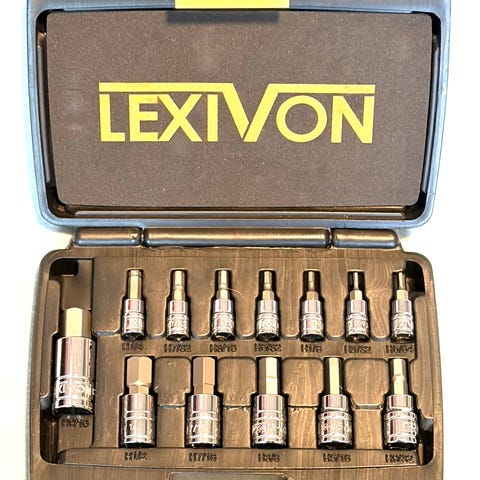 Tuumakoon pitkät ja lyhyet holkit 3/8” karalla, yhdistelmäavaimet räikkäpäillä ja värilliset kuusioavaimet 1/16” - 3/8”. Kahden ilmoituksen tuumakoon työkalut yhteensä 50€.