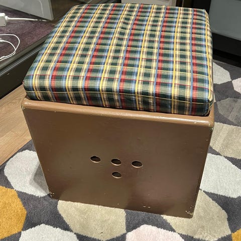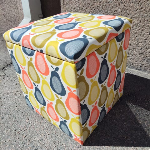 60-luvun rahi alkuperäisellä hyväkuntoisella verhoilulla. Kaikin puolin siisti, verhoilu ehjä, lakkapinnassa jotain pientä jälkeä. Leveys 51cm, syvyys 44cm ja korkeus 40cm. (Toimitus Kuopio-Helsinki välille onnistuu korvausta vastaan 1-2 kk välein.)