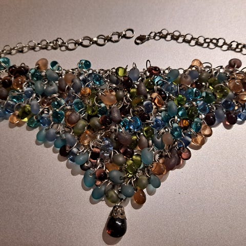 Kolme "planeettaa" kehineen nauhassa. Sininen nauha on 1m pitkä. Planeetat halkaisijaltaan 6cm. Koru on kuin uusi.