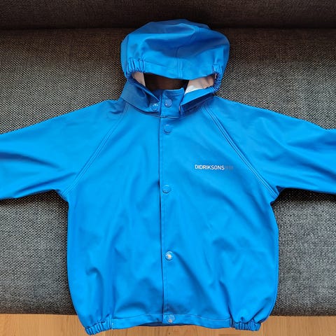 Välikausitakki, Didriksons storm system, koko 90, Kulumaa ja tummentumia on, ja ainakin pieni reikä olkapäässä. Vain nouto.
