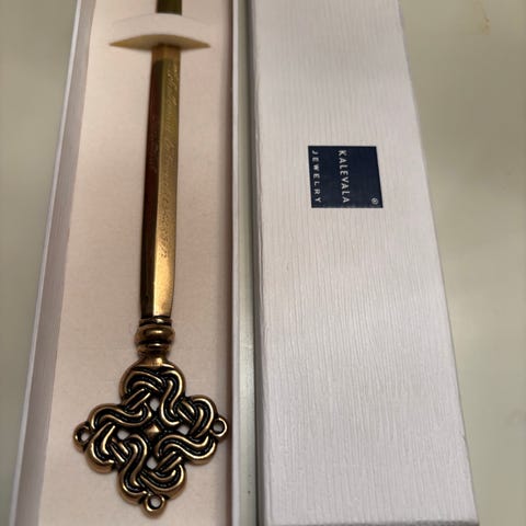 Kalevala pronssinen punoksellinen paperiveitsi alkuperäisessä laatikossa