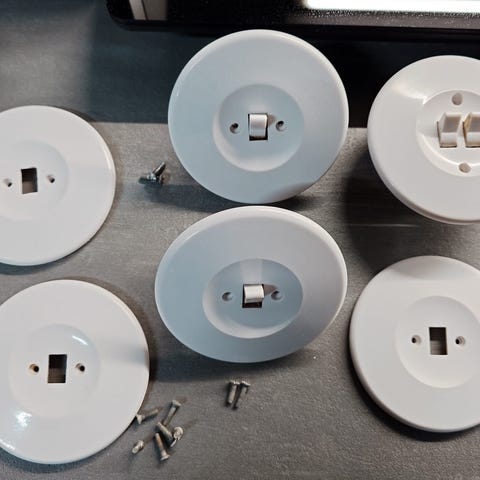 Myynnissä valaistuksen ohjaukseen Schlegel AFL VDE 0630 lukkiutuvia painokytkimiä 1,2w polttimoilla. Yhteensä 25kpl täysin toimivia ja hyvässä kunnossa lukuunottamatta kahdessa kytkimessä polttimo palanut. Kuvasta ja alla olevasta linkistä näkee tarkemmat tekniset tiedot. Haku Kangasalta tai lähetys toridiilillä.