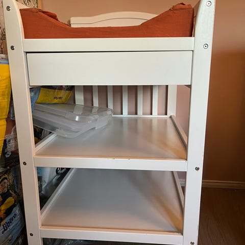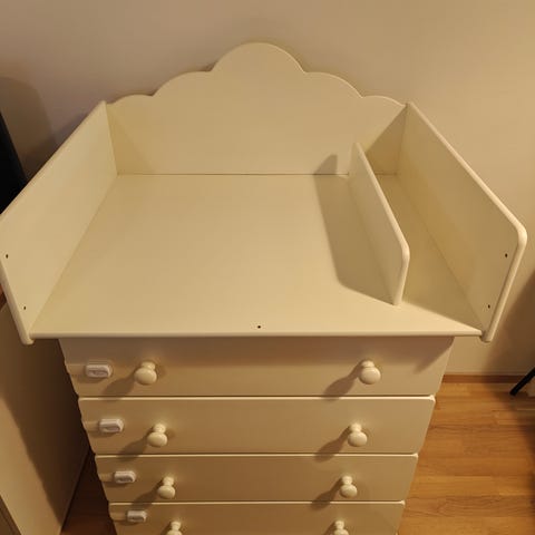 Todella tukeva ja laadukas kidset hoitopöytä. Oikein hyvässä kunnossa! Hoitotason saa otettua pois. 4 siistiä, isoa laatikkoa. Kun hoitotason ottaa pois, niin kannessa on jotain pientä jälkeä vähän.