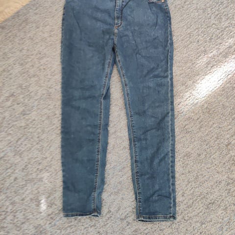 Vaaleansiniset Noshin korkeavyötäröiset farkut. Lahkeiden pituus ehkä 30". Siisti käytetty kunto. Itselle väärän malliset.