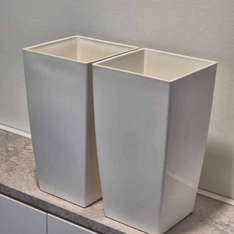 Ecopots Amsterdam 28 litran ruukut vaaleanharmaassa värissä. Valmistettu kierrätysmateriaalista ja sopivat sisä- ja ulkokäyttöön. Ruukussa on tyhjennysaukko. Siisti kunto. Mitat: korkeus 35 cm ja halkaisija 40 cm.