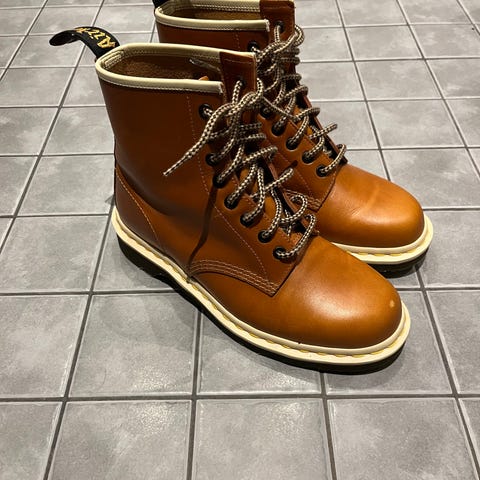 Myydään käytettynä ostetut dr martens 1460 -kengät. Kohtalainen kunto, mutta katu-uskottavuus jo valmiina. Sisällä geelipohjalliset, jotka saa pois.