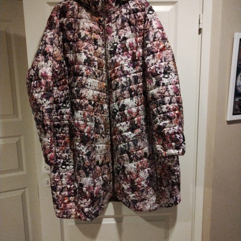 Vetoketju ei tule alas asti vaan jää lyhyen takin mallin mukaisesti lantin kohdalle, mutta napeilla saa alas asti laitettua kiinni.