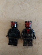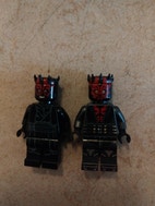 LEGO Star Wars Darth Maul Minifiguurit. Kaksi hahmoa, joissa musta ja punainen väriteema. Pieni koko, muovimateriaali. Sopii keräilyyn tai leikkiin.