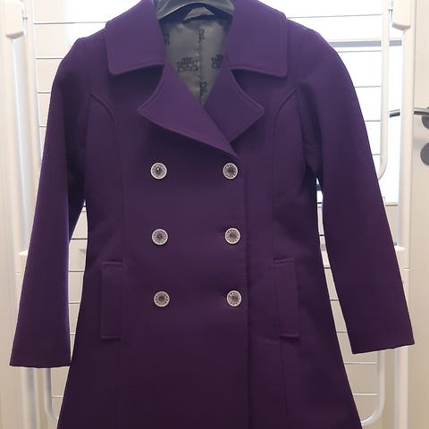 Hyvin vähäisellä käytöllä ollut tyttöjen villakangastakki, koko 140.