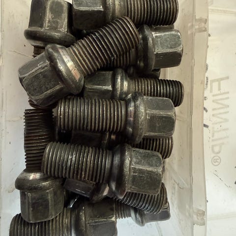 20 kpl pyörän pultteja M14x1,5mm, pituus näkyy kuvassa, ovat olleet vag autossa,viisipulttisessa vanteissa.