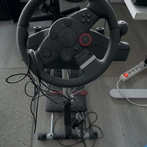 Logitech G25 rattiohjainsetti ( ratti, polkimet ja vaihdepaneli) PS2:lle. Ymmärtääkseni yhteensopiva myös PS3:n kanssa.