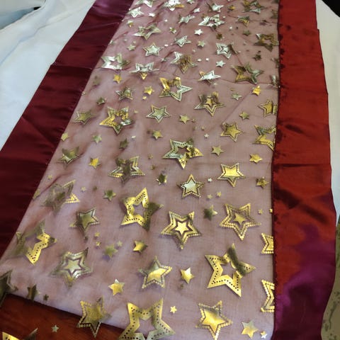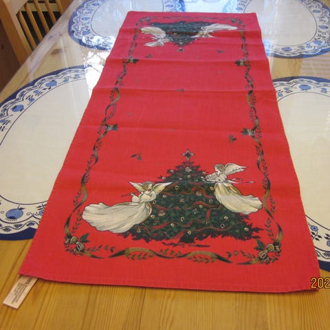 Hemtex kaitaliina 110x35, jossa on punainen pohjaväri ja valkoiset raidat. Tupsut päissä 100 % puuvilla. Ei käytetty.
