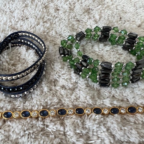 Kaksi uutta ranneketjua Ranskasta. Siro ketju, säädettävä pituus, pienet riipukset koristeena. Valmistajan leima molemmissa, ei hopeaa.