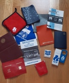 On pullonavaajaa, taskukalenteria, pannulappua ym ym. Lisäksi kokonainen pikkupahvilaatikko KOPin tulitikkuja.