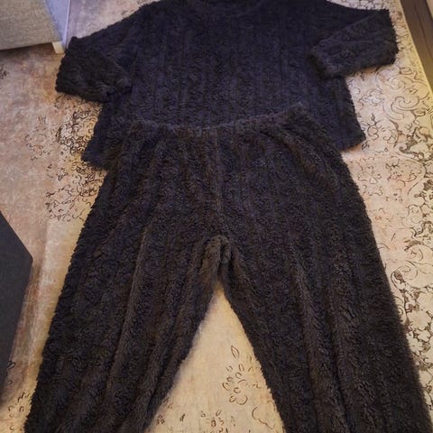 Tyylikäs tummanharmaa olo/lenkkiasu, pehmeää plyysiä