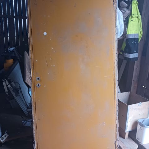 Maalattu puinen ovi jonka pinnassa on luultavasti vaneria molemmin puolin. Vanhat Lukkopesä ja oven kahvat ovat ovessa. Mitat on 200x85 ja vahvuus n.4.5. Maalipinta on kulunut. Kuljetus voidaan sopia Mäntsälän, Lahden ja Riihimäen suuntiin
