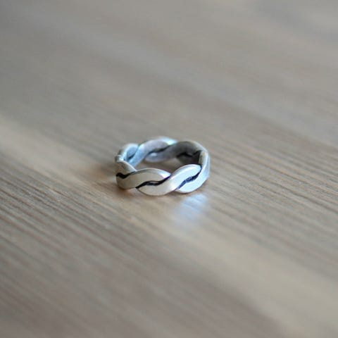 Hopeasormus tai hopeoitu sormus. Koko noin 20. Leveys noin 2 mm. Leimoja en löytänyt mutta kovasti vaikuttaa hopealta, kevyitä hopeasormuksia kun ei tarvitse leimata. Hyväkuntoinen, tasaisen pyöreä rengas ja kaunis vaalea hopean väri. Lahjaidea isälle, miehelle tms.
