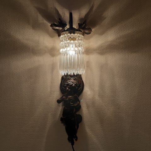 Mökiltä vanhat seinälamput. Päällisin puolin ehjät ja kauniit, toimivuudesta ei tietoa. Yhteishintaan 50e, yksittäin 25e/kpl. Toisessa johto, toisessa ei. Nouto.