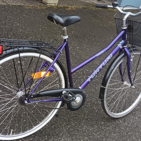 28″ renkaat, sopii hyvin kaupunkiajoon.