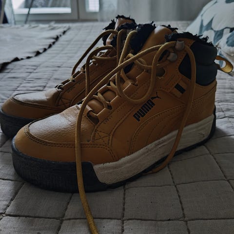 Puma King lasten kengät, koko 36, unisex. Musta ja valkoinen väriyhdistelmä, kumipohja. Soveltuvat arkikäyttöön ja sisäpelikengäksi.