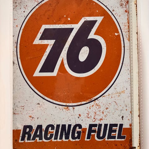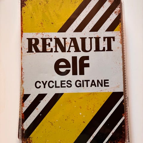 Elf Race Fuel metallinen kyltti, pyöreä muoto, käytetty kunto, näkyvissä kulumaa ja ruostetta. Sopii koristeeksi tai keräilyesineeksi.