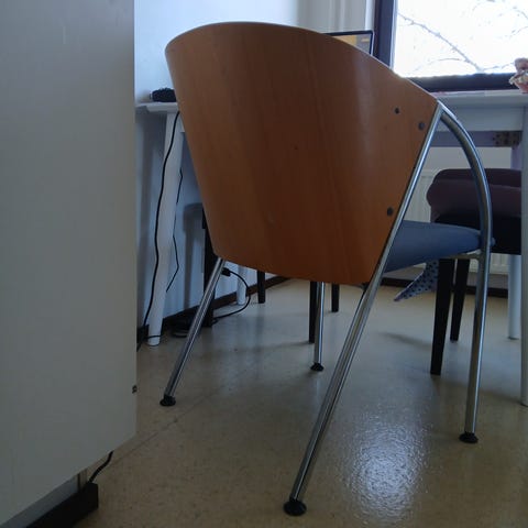 Tuoli on sirorakenteinen ja sopii moneen paikkaan.