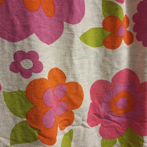 Harmaalla pohjalla hennot tulppaani kukat. Rypytys nauha ylä osassa.päärmätty. Ohutta puuvillaa.