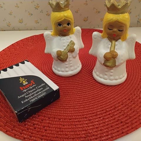 Googlen mukaan kuvassa perinteinen saksalainen joulukoriste, joka tunnetaan nimellä "Engel und Bergmann" (enkeli ja kaivosmies). Nämä hahmot ovat peräisin Erzgebirgen alueelta, joka on tunnettu puukäsitöistään.