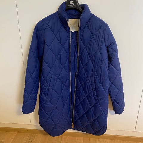 Myydään sininen toppatakki. Koko 46/48. Kaulukseen ja hupun reunaan kuuluu karvareunus, jota ei kuvassa ole, mutta tulee mukaan.