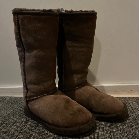 Kauniit ruskeat nauhalliset talvinilkkurit, lämmin vuori ja paksu pohja. Varren suussa neulottu kaunis yksityiskohta. Sopivat arkeen ja ulkoiluun, pitävä kumipohja.