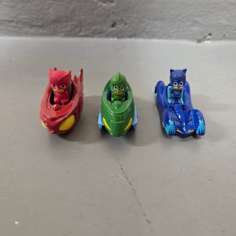Pyjamasankarit (PJ Masks) -sarjasta tutun Kollin auto. Liikkuu ja pitää ääntä pattereilla. Auto on tuotu Espanjasta - en tiedä onko Suomessa näitä joskus ollut.