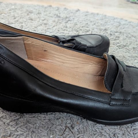 Hyväkuntoiset mustat ECCO kävelykengät, koko 37. Materiaali nahkaa, kiinnitys tarranauhalla, kaunis koristenappi.