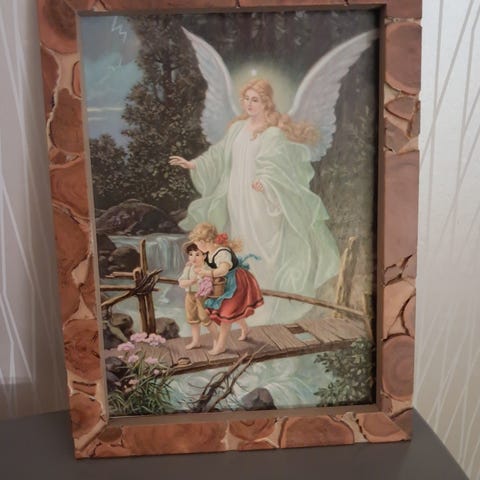 Myydään uudenveroinen suojelusenkeli taulu. Kauniit värit. Koko 36x48cm.