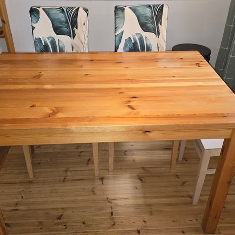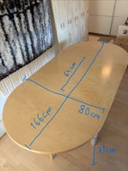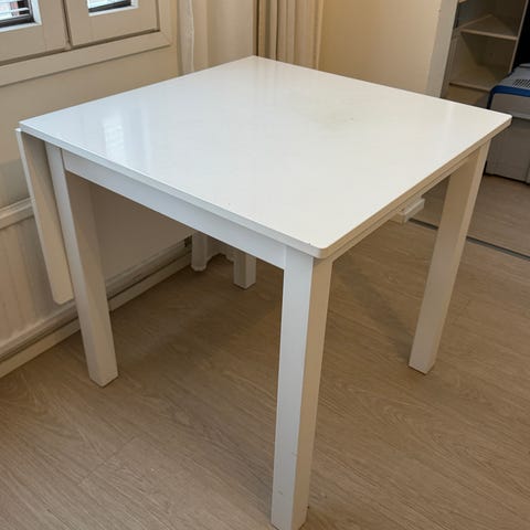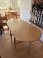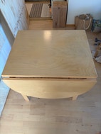 Koivuviiluinen klaffipöytä. Pinnassa käytön jälkiä. Hyvä ja toimiva.