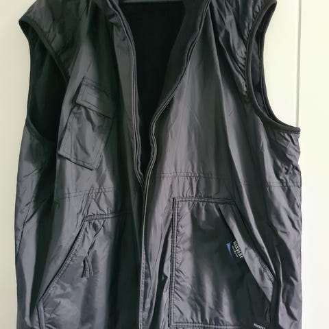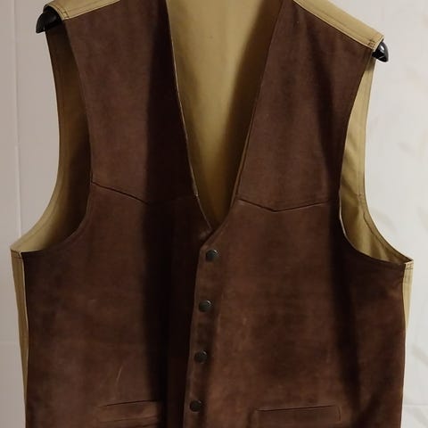 Hyväkuntoinen liivi, mokkanahkaa ja osa nappanahkaa.