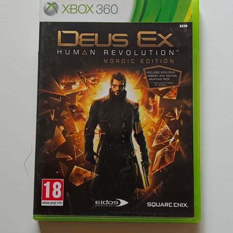 Deus Ex Human Revolution Nordic Edition on Xbox 360 -pelialusta varten suunniteltu videopeli. Peli kuuluu toimintaseikkailujen genreen ja sisältää kattavan tarinankerronnan sekä monipuoliset pelimekaniikat. Ikäsuositus 18 vuotta.