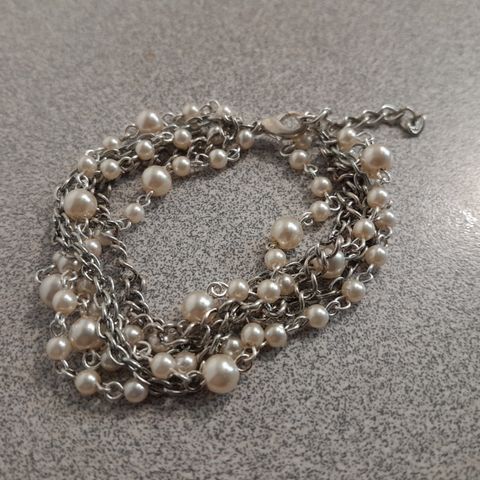 Rannekoru mustia ruusuja ja välissä hopeisia helmiä, hyvin pidetty siisti.