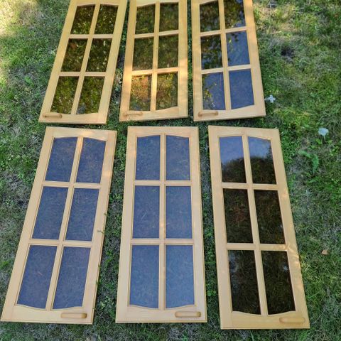 Ovien koot ja kätisyys toisessa kuvassa. Myynnissä ei kaappien runkoja. Laminaatti pinta ja väri vaalean harmaa.