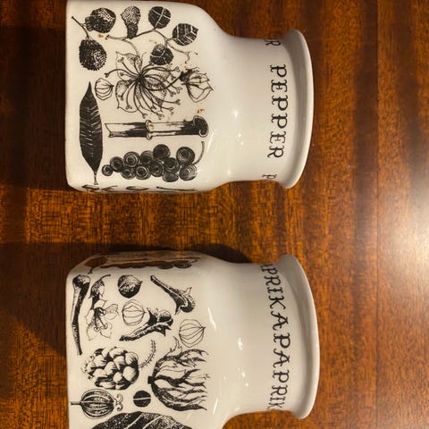 Arabian Arctica-sarjaan kuuluvia maustepurkkeja kansien kanssa. Kansien kumitiiviste kuivunut, joten kansi ei pysy tiukasti.