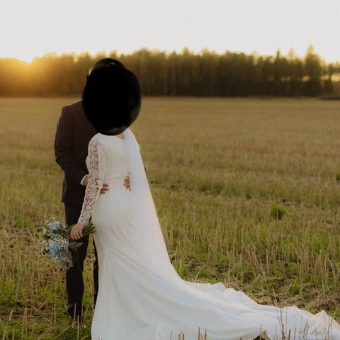 🤍 Kerran kesällä 2025 käytetty ihana Sis Idmanin Avril häämekko, johon on tilausvaiheessa lisätty kaksi pystysaumaa helman etuosaan sekä napit taakse