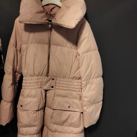 Talvitakki hyvässä kunnossa nuorelle tai vanhemmalle naiselle. Ruusun värinen.