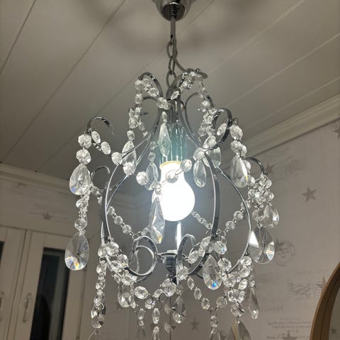 Hox! Kuvassa valaisin kuvausta varten tuollaisessa amppelikoukussa.