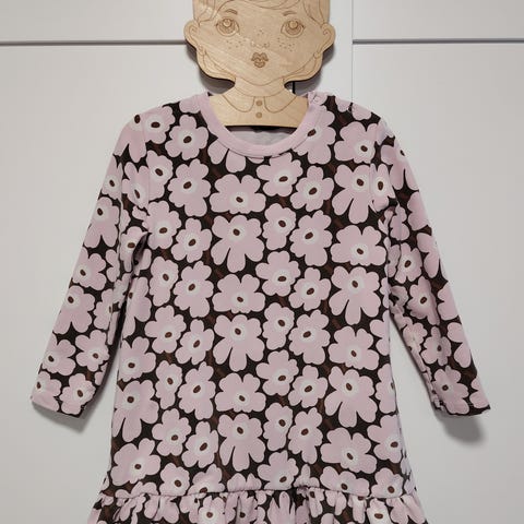 Marimekko lasten raidallinen mekko, musta-valkoinen. koko 92/98. Yhden lapsen satunnaisesta käytöstä. Siisti.