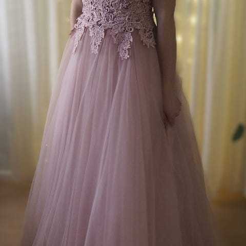 Tämä on ollut vain kerran käytössä mun siskolla pari vuotta sitten ja todella hyvässä kunnossa! Ihan kuin uusi :) Mekossa on todella kauniit kirjailut ja pieniä jalokiviä.